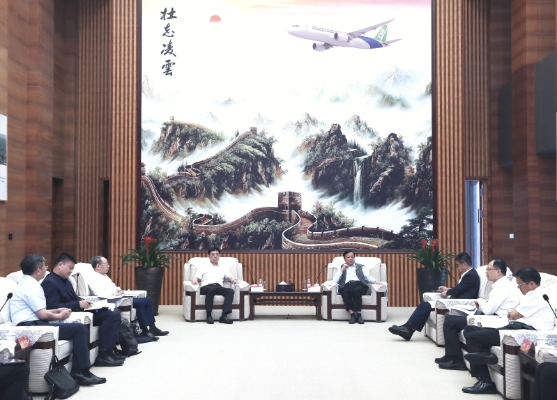 8月18日,中國誠通黨委副書記、總經理郭祥玉在上海拜會中國商飛黨委書記、董事長賀東風,雙方就進一步加強合作進行深入交流。中國商飛黨委常委、總會計師于世海參加會見。